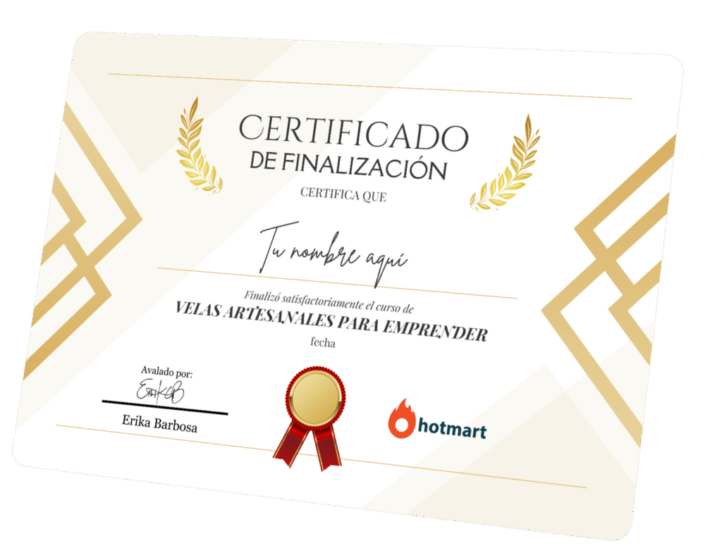 El curso es hermoso y las clases son muy claras. La plataforma me funcionó perfecto y aprendí a hacer mis velas rápidamente porque la profesora explica con muchísima paciencia. Gracias a Dios ya tengo mis primeros pedidos y poco a poco mi emprendimiento va creciendo. Sin duda, este curso está hecho con mucho amor.